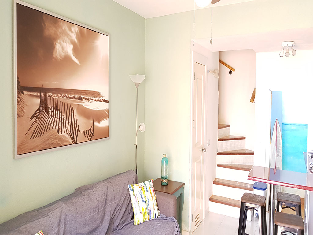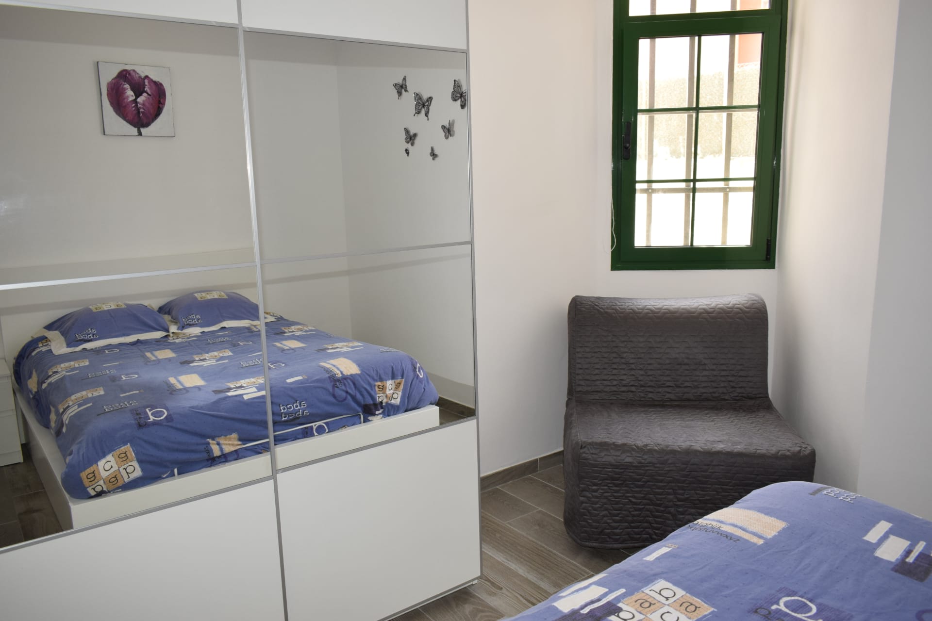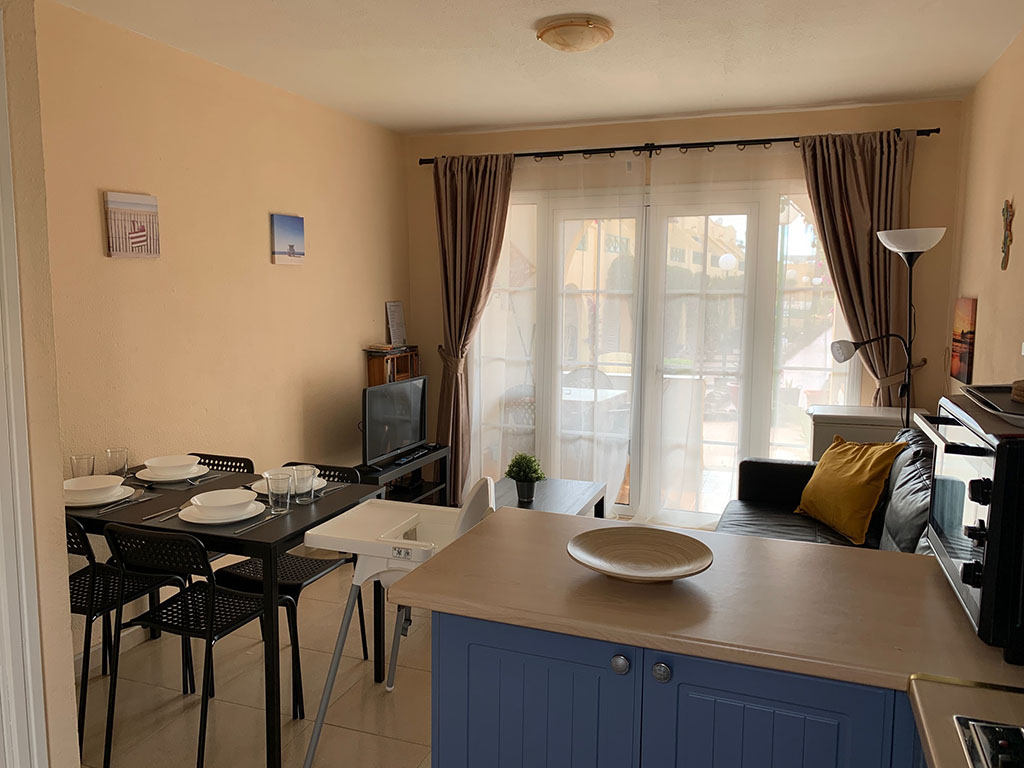 Duplex Eurocaleta au centre de CALETA DE FUSTE – 1 chambre double + 1 canapé lit – Jusqu’à 4 personnes. Très bien situé au centre de Caleta de Fuste, à deux pas des restaurants et bars et à 5 minutes à pied de la plage . Piscine communautaire, terrasse, salon, cuisine, sdb, machine à laver, TV – Linges de maison, nettoyage inclus !