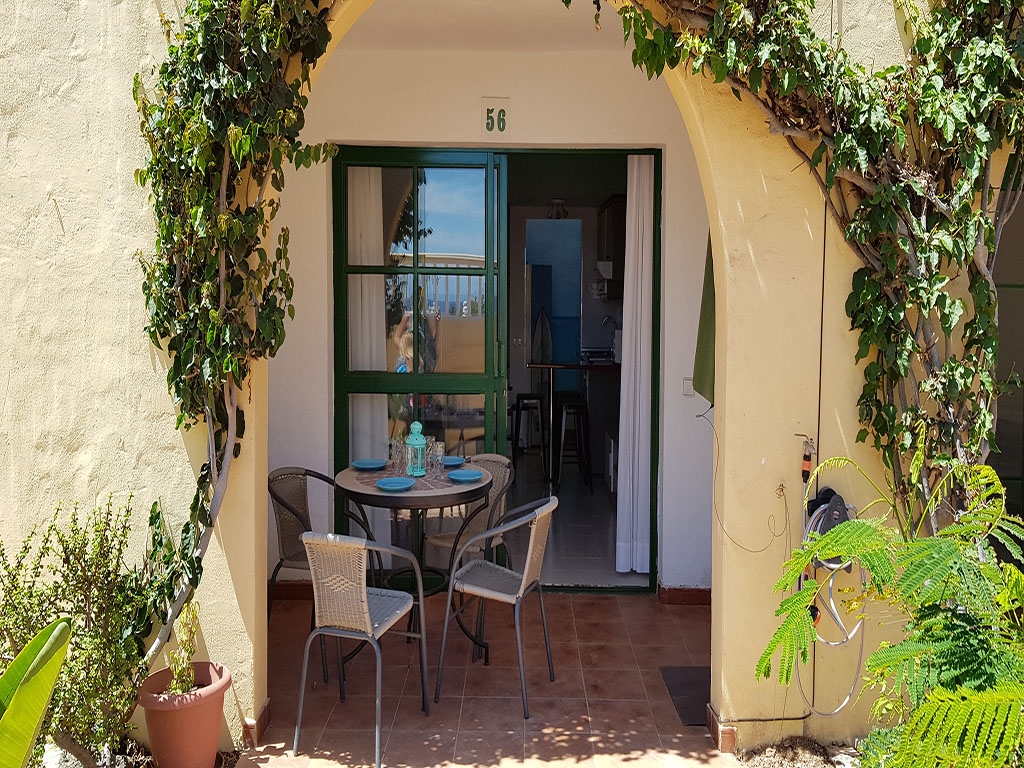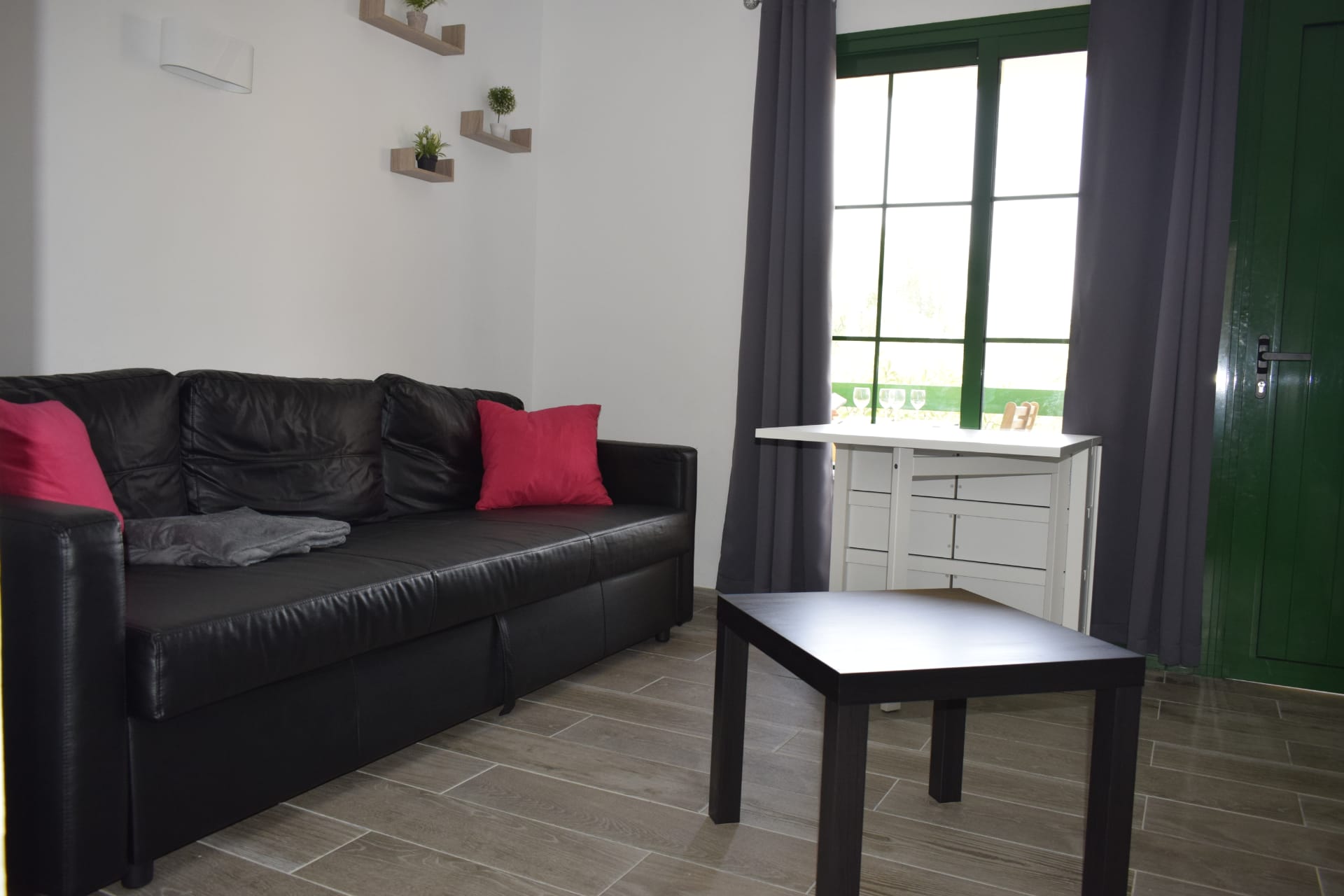 Bungalow Bouganville V à COSTA ANTIGUA – 1 chambre double + 1 canapé lit – Jusqu’à 4 personnes. Rez-de-chaussée entièrement équipé , piscine communautaire, terrasse, salon, cuisine, sdb, machine à laver, TV, WIFI – Linges de maison, nettoyage inclus !