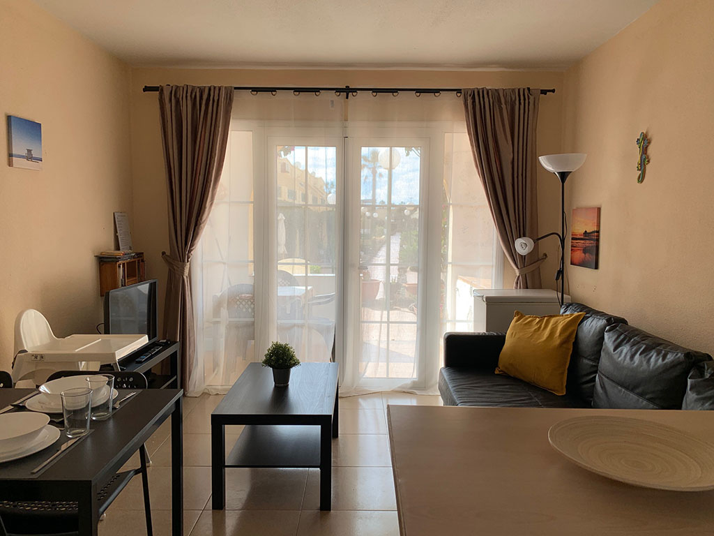 Appartement rez-de-chaussée Torres Del Castillo à COSTA ANTIGUA – 1 chambre double + 1 canapé lit – Jusqu’à 4 personnes, piscine communautaire, terrasse, salon, cuisine, sdb, machine à laver, four, lave vaisselle, TV, IPTV, WIFI – Linges de maison, nettoyage inclus !