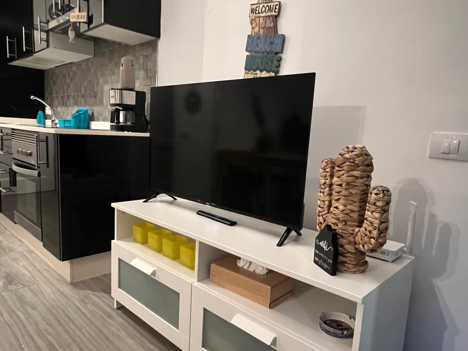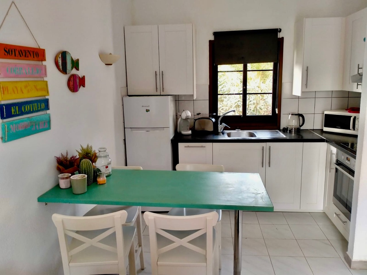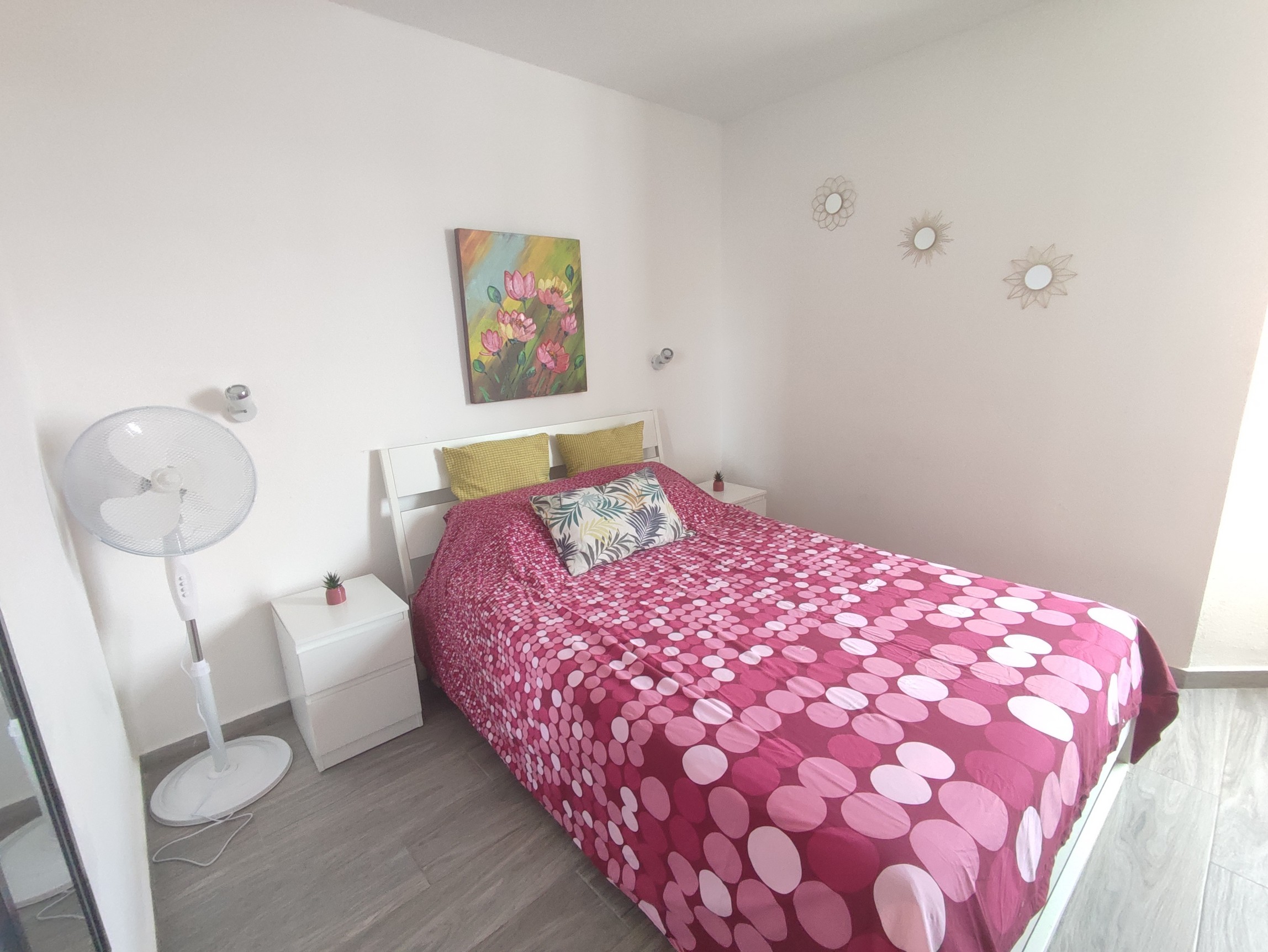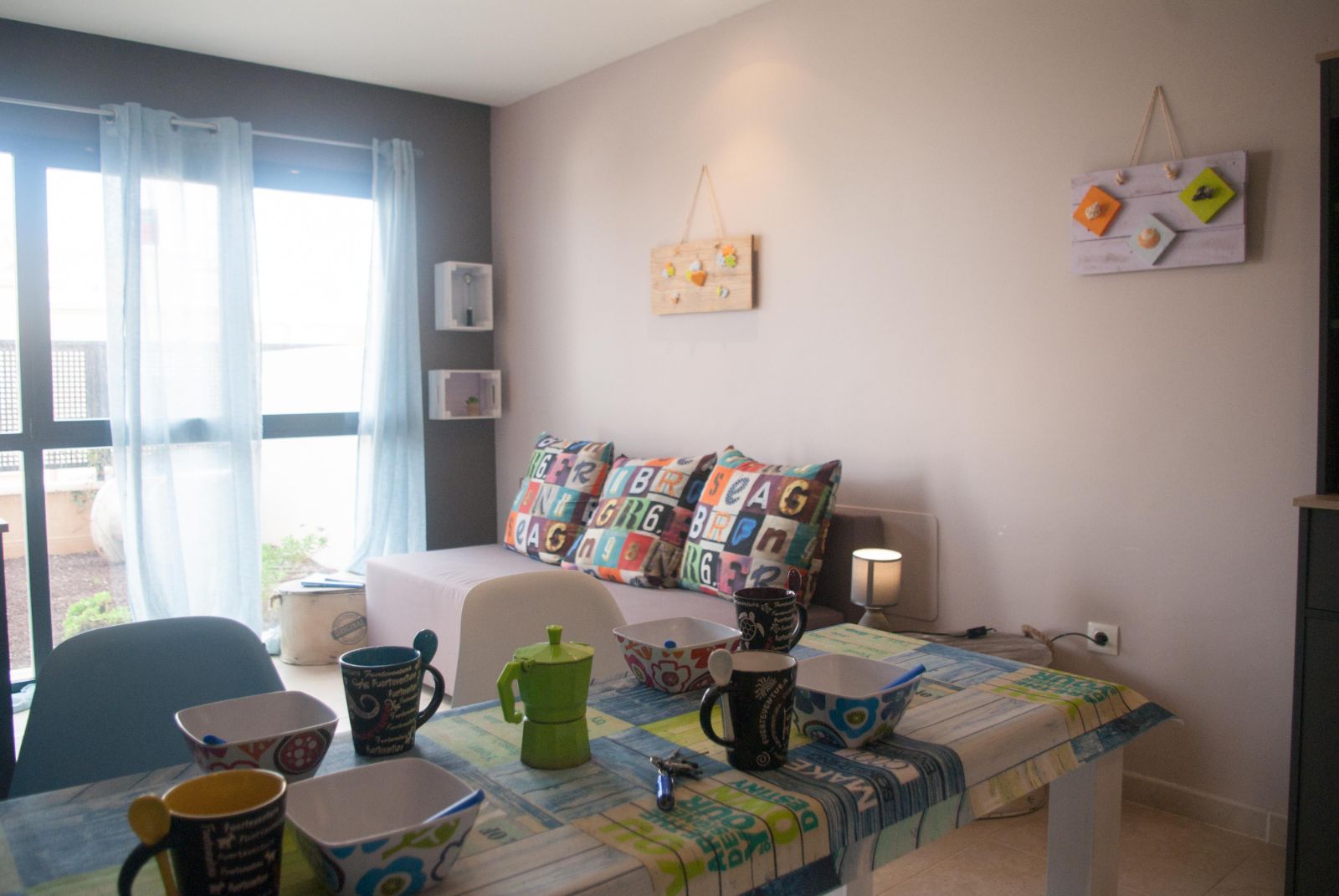 Appartement Bouganville I à COSTA ANTIGUA – 1 chambre double + 1 canapé lit – jusqu’à 4 personnes, rez-de-chaussée, entièrement rénové et équipé, piscine communautaire, terrasse, salon, cuisine, sdb, four, machine à laver, TV, WIFI– Linges de maison, nettoyage inclus !