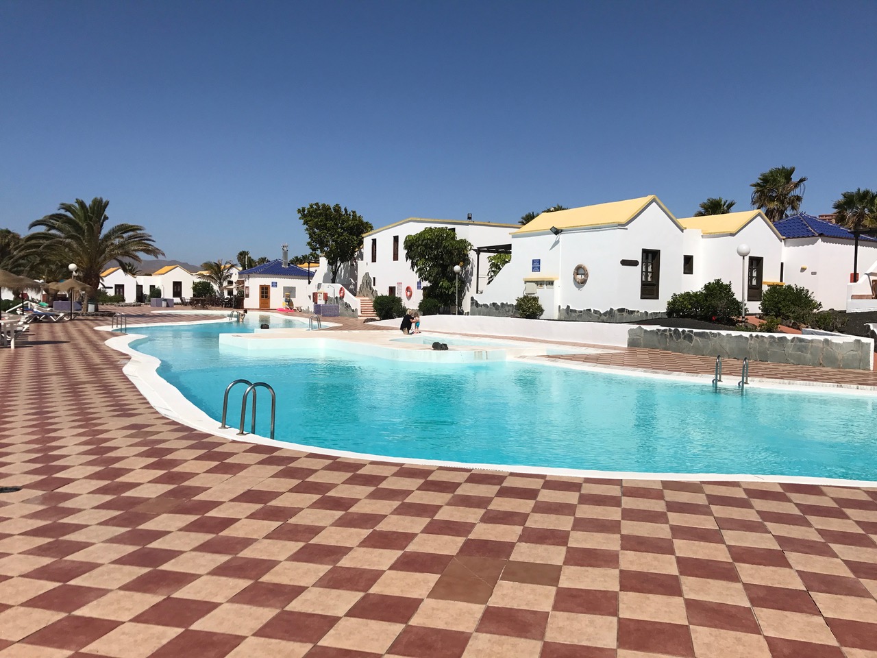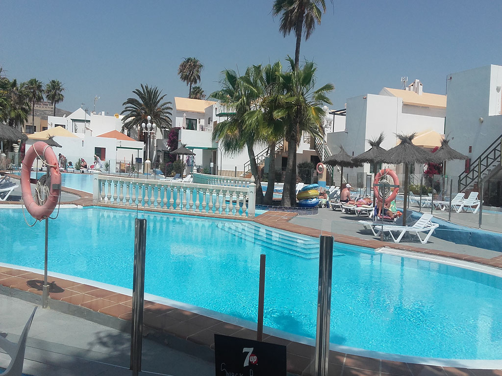 Bungalow Puerta Del Sol I à CALETA DE FUSTE– 1 chambre double + 1 canapé lit– Jusqu’à 3 personnes. Situé à deux pas des bars et restaurants et à 5 minutes de la plage et du port de Caleta de Fuste, piscine communautaire, terrasse, salon, cuisine, sdb , machine à laver, TV, WIFI, IPTV – Linges de maison, nettoyage inclus !