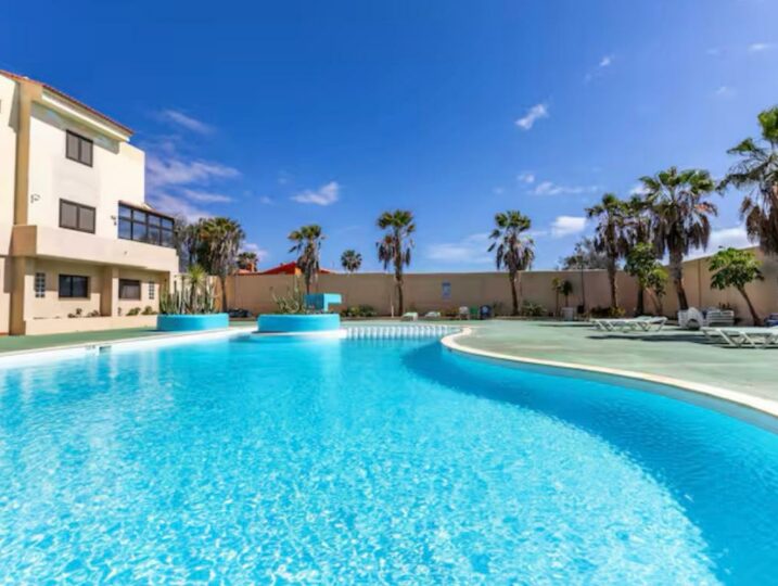 Duplex au parc holandes (à 10 minutes de Corralejo ) – 1 chambre double et 1 divan lit – Jusqu’à 4 personnes. Entièrement rénové dans une résidence très calme, piscine communautaire, balcon, salon, cuisine, sdb, machine à laver, TV, WIFI – Linges de maison et nettoyage inclus !